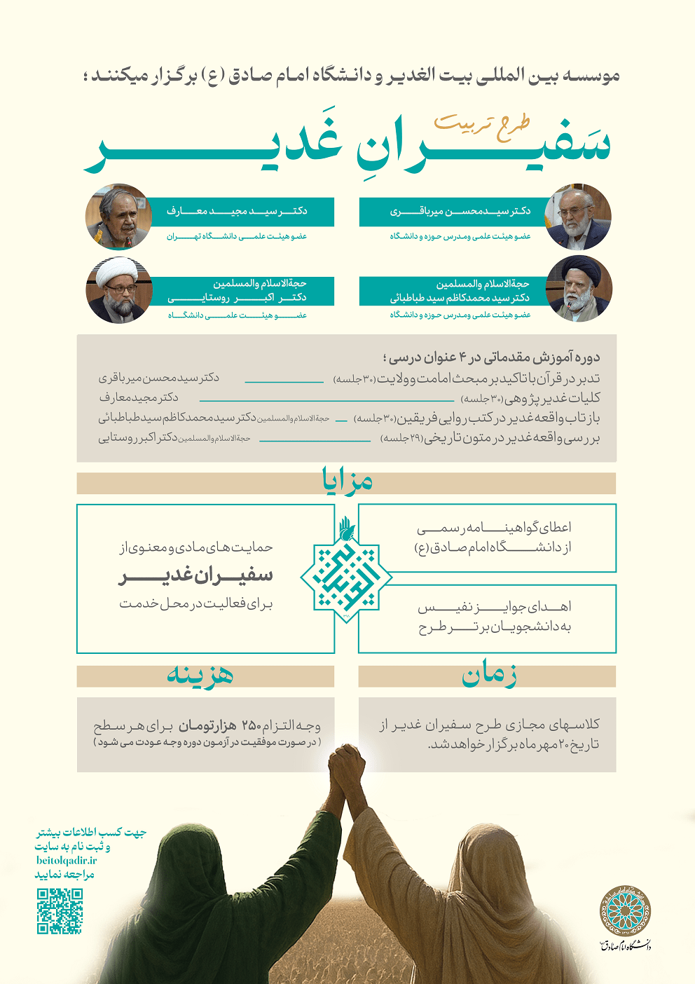 کد تخفیف جهت ثبت نام در دوره سفیران غدیر به ارزش 300 هزار تومان هدیه بیت الغدیر به شما: